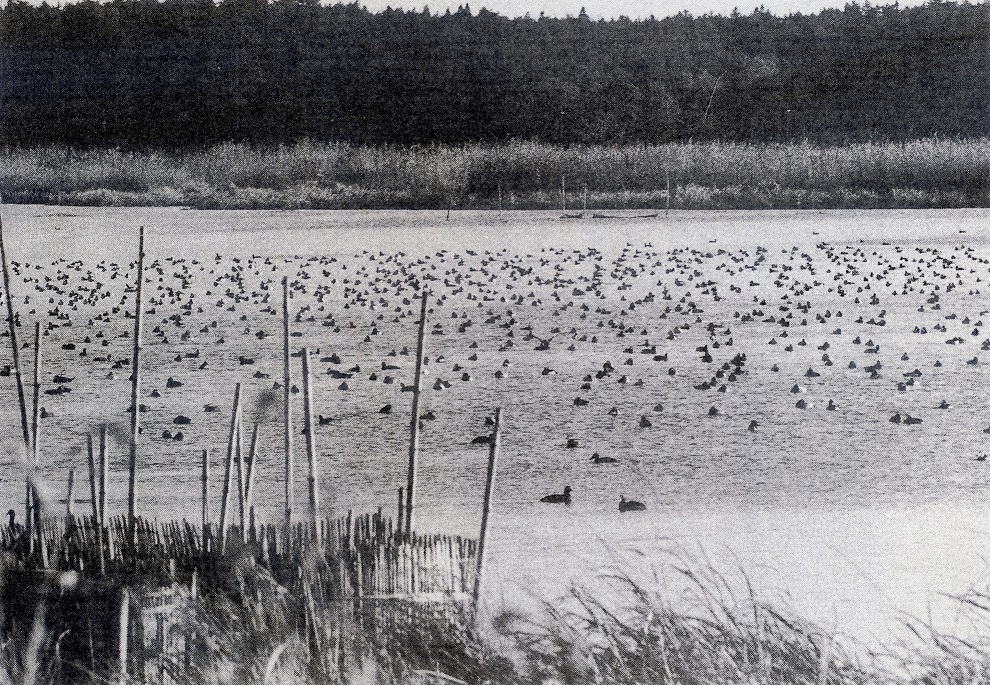 手賀沼環境学習資料「伝えよう手賀沼を」(千葉県東葛地方教育研究所刊2004年22頁)には1921年(大正10年)の調査では、約40万羽のカモ類が飛来したと記述されています。