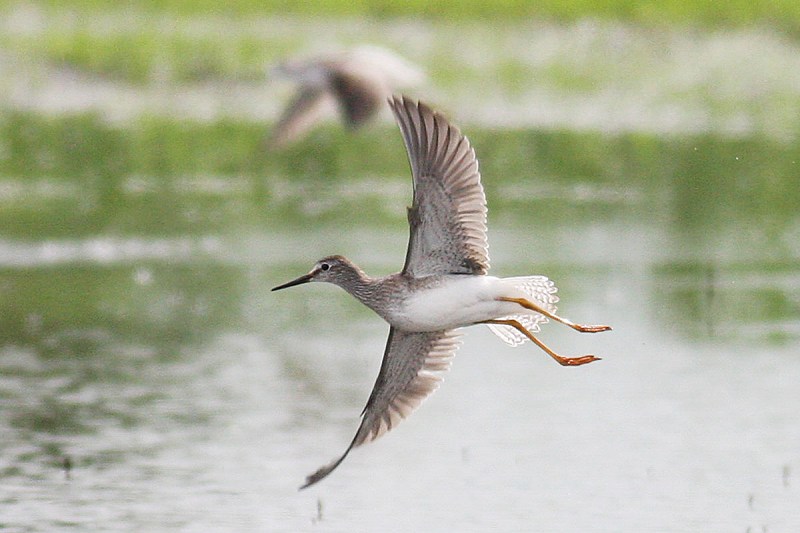 水面が、絹を張ったようで綺麗でした。(中央は、エリマキシギです。)