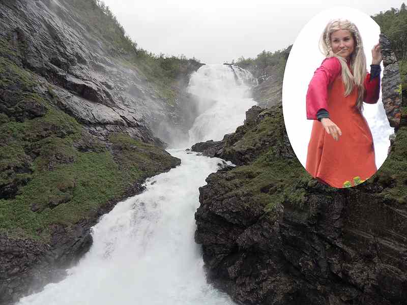 ノルウェー・フィヨルド観光船の乗り場フロムの草地で。