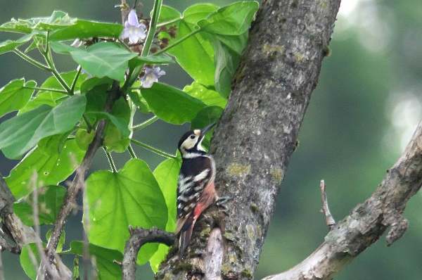 翌日は4時半出発で、まずはチゴモズのポイントへ行ったが、残念ながら不発だった。大きなドラミングを聞きながら美人林を抜けて、下見でさえずる姿を見たクロツグミのポイントへ向かう。撮影:松田幸保