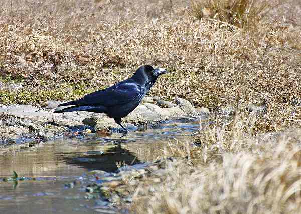 留鳥として、日本全国の市街地から高山まで棲むが、市街地や海岸に多い。ハシボソガラスよりも少し大きく、額が出っ張り、嘴は太く尾はまるみがある。カーカーと澄んだ声で鳴く。手賀沼周辺では、通年、市街地や公園、林、川原などで普通に見られる。繁殖が認められる。